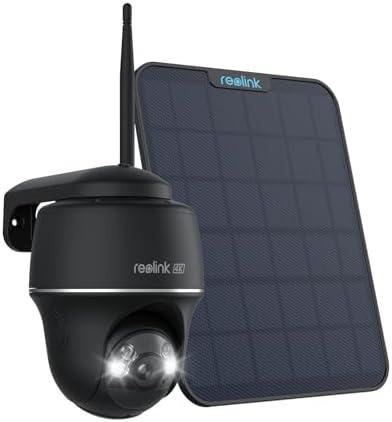 Reolink 4K Camera Solaire Exterieur WiFi sans Fil, 355°Pan&Tilt, 2,4/5Ghz WiFi, Vision Nocturne Couleur, Compatible avec Amazon Alexa, Argus PT Ultra Noir+Panneau Solaire