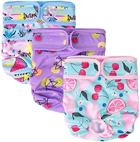Lyneun Lot de 3 Couches pour Chien Femelle, réutilisables, sans Fuite, lavables et réglables pour Chiens de Petite, Moyenne et Grande Taille (S)