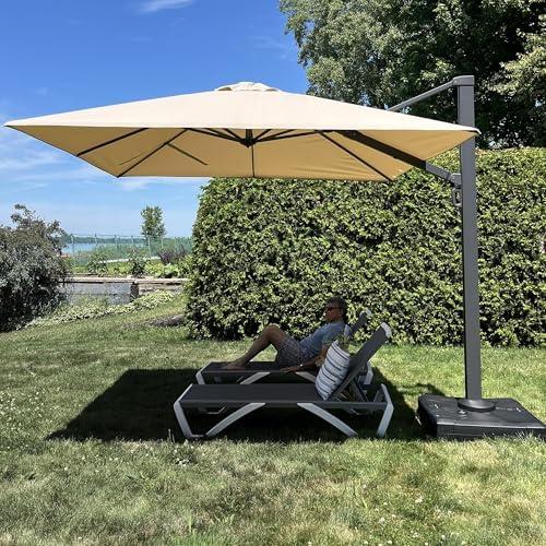 PURPLE LEAF 3 x 3 m Reinforced Cantilever Patio Parasol, Outdoor Garden Parasol Rotatable 360° Umbrella Pole Thickened Version with UPF50+ Sun Protection, for Terraces, Beige