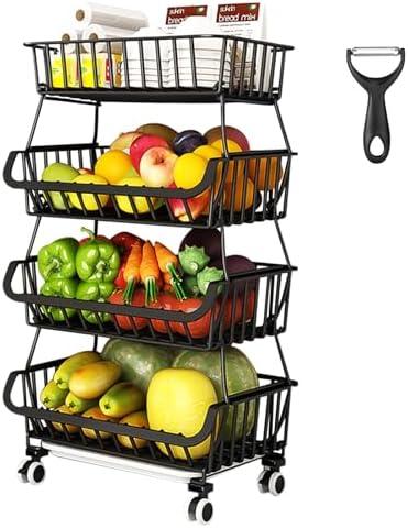 Le YUTUY Panier de Fruits et Legumes avec Roues est un produit idéal pour toutes les personnes souhaitant garder leur cuisine bien organisée et économiser de l’espace de rangement. Ce panier à fruits à quatre niveaux est très facile à installer grâce au système de boutons-pression. Il ne nécessite pas de vis et peut être rapidement monté ou démonté selon vos besoins. Les paniers sont empilables et permettent d’économiser de l’espace précieux pour stocker et exposer fruits, légumes, serviettes, magazines, collations, jouets pour enfants, articles de toilette, fournitures de bureau et autres commodités. En outre, la conception en maille aérée de ce support de rangement réduit la formation de poussière et assure une bonne circulation de l’air.