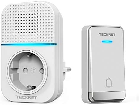 TECKNET Sonnette sans Fil, 400m Sonnette de Porte IP65 Étanche Carillon Electronique, Sonnette de Porte avec Fonction de Charge et Lumière LED, 60 Mélodies au 5 Niveaux Volumes