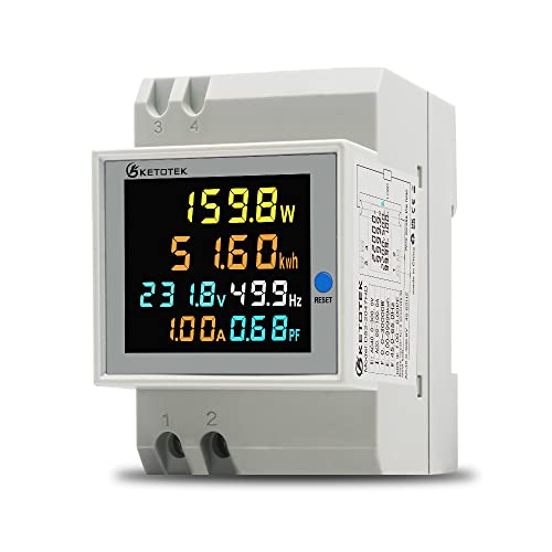 KETOTEK Compteur d’énergie monophasé Compteur d’électrique numérique AC 40-300V 100A Compteur Electrique 1 phasé Wattmètre Rail DIN Mètre Watt KWh Voltmètre Ampèremètre