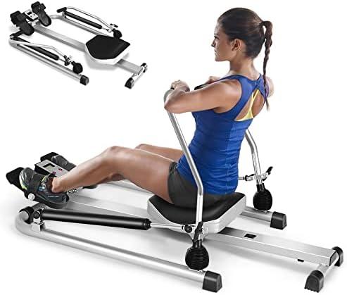 - 1 GYMAX Rameur Pliable 50 kg de Résistance Réglable, 100 kg de Chargé Fitness Pliable, Affichage LCD, Pédale Antidérapante & Siège Coulissant, Rameur de Sport, Entraînement à la Maison