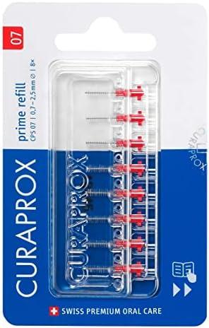 Curaprox brosses interdentaires CPS 07 prime, Refill, 8 pièces, 0,7 mm de diamètre, 2,5 mm d’efficacité, rouge, recharge, sans support