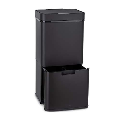 KLARSTEIN Royal Trash – Poubelle à capteur, volume 72 L en 4 bacs, déchets résiduels & de recyclage: 43 & 2 x 12,5 L, avec couvercle: 4 L, ouverture et fermeture automatiques – noir