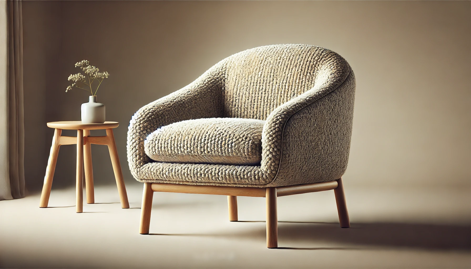 Cette chaise se distingue par son assise enveloppante et ses accoudoirs intégrés, offrant un soutien optimal et un confort incomparable. Les pieds en frêne massif ajoutent une touche naturelle et chaleureuse, tandis que le revêtement en tissu bouclette apporte douceur et modernité.