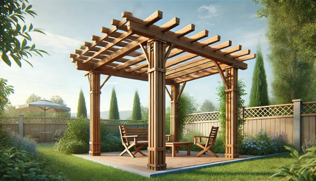 Cette pergola offre une grande surface ombragée idéale pour les repas en plein air, les réunions familiales ou simplement pour se détendre. Sa structure en bois assure une intégration harmonieuse dans tout jardin, ajoutant une touche de naturel et d’élégance.