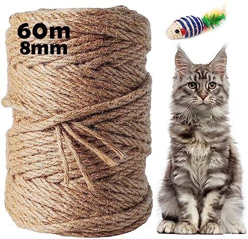 - 2 Corde en Sisal Naturelle 60M x 8MM pour Réparation et Remplacement de Chat Scratch Pilier, Arbres à Chat, Rayure Arbre, Chat Rayure Tampon, Décoration de Bricolage de Jardin et Maison (60M x 8MM)