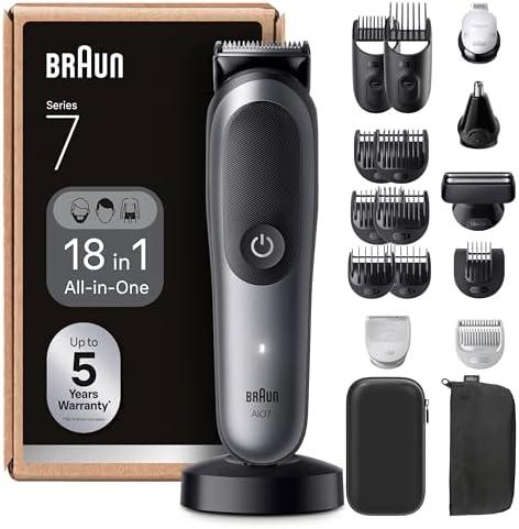 Braun AIO7585 Series 7 All-in-One Electric Trimmer for Men, Grey, 18-in-1 Kit with ProBlade and 8 Combs, Shaving Set with Accessories, Designed for Shaving Beard, Hair and Body