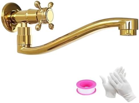 KOPYFANTAP Robinet Mural Eau Froide Doré, Rotatif à 360° Robinetterie Murale de Lavabo Extérieur Jardin, Simple Eau Froide Robinets Mural pour Cuisine, Jardin, Salle de Bain, G1/2(21cm)