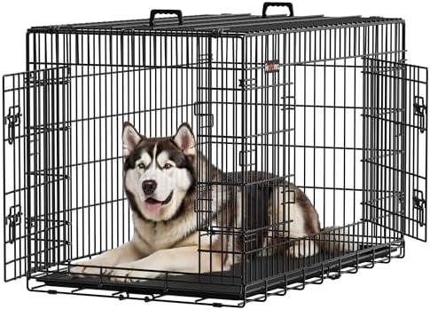 La Feandrea Folding Dog Cage est une cage pour chien de grande taille (XXL) mesurant 122 x 74,5 x 80,5 cm, idéale pour les chiens pesant entre 42 et 50 kg, tels que les Bergers allemands, les Malamutes d’Alaska et les Golden Retrievers. Cette cage est fabriquée en fil métallique durable, résistant à la rouille et avec une surface lisse sans bords tranchants pour assurer la sécurité et le confort de votre animal. La cage est équipée de deux portes avec des serrures en forme de L pour empêcher votre animal de les ouvrir lui-même. Voir le produit sur Amazon.