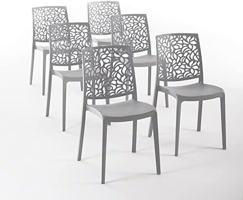 - 1 SIEDITI FUORI E DENTRO Resin Chairs with Fiberglass Stackable for Indoor/Kitchen/Dining and Outdoor/Garden Anna (6 Chairs, Dark Grey)