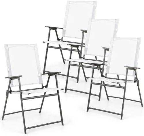 COSTWAY Set of 4 Outdoor Garden Chair, Safety Lock, Metal Frame, Folding Chair for Yard, Camping, Dining Room, 62 x 58 x 96 cm, Load 150 kg, White