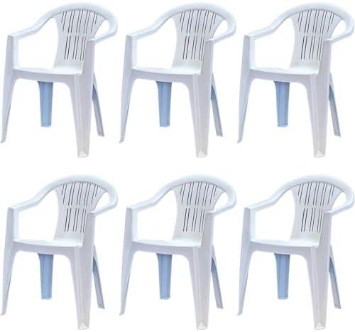 - 4 Tomaino – One Piece Plastic Garden Chair – Set of 6 Stackable Outdoor Resin Chairs Armrests (6, White)