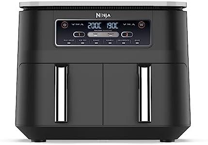 - 2 NINJA Foodi Dual Zone Airfryer Digital, 2 Drawers, 7.6L, 6-in-1, Oil Free, Air Fry, Max Crips, Roast, Bake, Warm, Dehydrate, Non-Stick, Dishwasher Safe Baskets, Black AF300EU