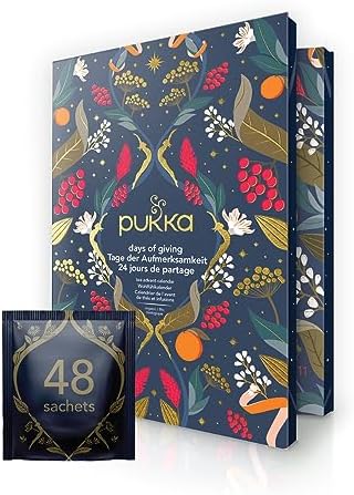 Pukka Calendrier de l’avent 2023, idée cadeau de Noël, sélection de 48 thés noirs, thés verts et infusions biologiques, idéal à offrir, 48 sachets