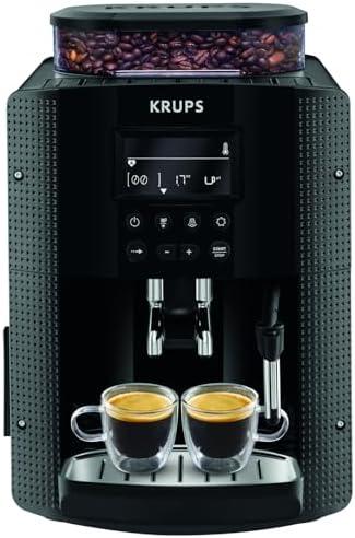 Krups Machine à café grain, 2 expressos simultanés, Ecran LCD, Cafetière espresso compacte, Nettoyage automatique, Buse vapeur pour Cappuccino, Essential noire YY8135FD