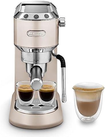 De’Longhi Dedica Arte EC 885.BG Machine à expresso avec buse MyLatterArt en mousse de lait, design compact, 15 cm de large, réservoir d’eau de 1 litre, tampons E.S.E Beige