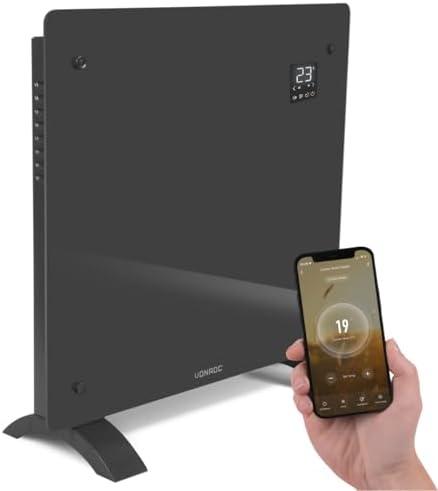 Le VONROC 1000W est un panneau radiant en verre gris, idéal pour chauffer des pièces jusqu’à 12m². Ce panneau est équipé d’un écran LED qui donne un aspect luxueux et raffiné à votre intérieur. Il intègre plusieurs fonctionnalités technologiques pour faciliter son utilisation, telles que le contrôle manuel et le Wi-Fi pour une utilisation à distance via l’application gratuite Tuya Smart Life. Le thermostat est réglable entre 5 et 50°C. Le panneau radiant mural possède également deux positions ajustables pour la puissance de chauffage (500W et 1000W), un mode hors-gel et une personnalisation de la luminosité de l’écran ainsi que du minuteur. Voir le produit sur Amazon.