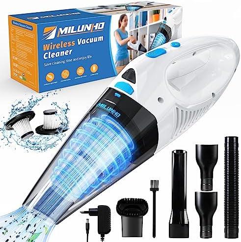 Milunho Aspirateur à Main, 8000PA, 12V Portable Mini Aspirateur Voiture sans Fil, avec Lampe LED Aspirateur pour Maison Voiture Bureau Table