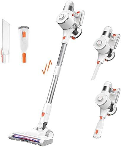 Doté d’un performant aspirateur balai 4 en 1 et d’une technologie de séparation cyclonique air & saleté, cet appareil de nettoyage multifonction est idéal pour les poils d’animaux, tapis, canapés et voitures. Ses 5 couches de filtration haute efficacité capturent jusqu’à 99% de la poussière et des allergènes. Il est doté d’une batterie amovible pour une plus grande autonomie, d’une station de rangement mural pour un gain de place et d’un éclairage LED rotative à 180° pour un nettoyage précis. Parmi ses avantages, il offre une puissance de 30Kpa/400W et une autonomie de 35 minutes. Voir le produit sur Amazon.