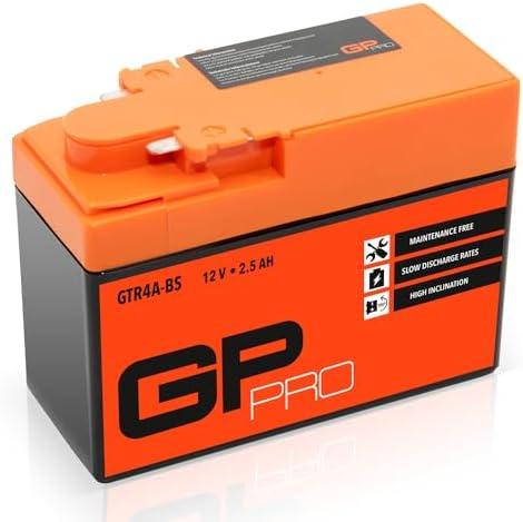 Enfin, last but not least, la savoureuse GP-PRO GTR4A-BS Batterie gel compatible avec YTR4A-BS / 50415 sans entretien et scellée 12 V 2,5 Ah. Avec une performance exceptionnelle pour un format mini, elle ravira tout particulièrement les possesseurs de scooters et autres deux-roues motorisés en quête d’une batterie solide et durable.