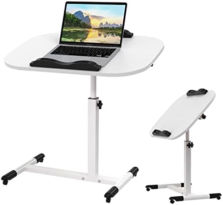 Naohfofha Bureau debout réglable en hauteur 60 x 40 x 61-95 cm, réglable en hauteur, support pour ordinateur portable, table d’appoint mobile avec roulettes, table d’appoint mobile pour lit et canapé