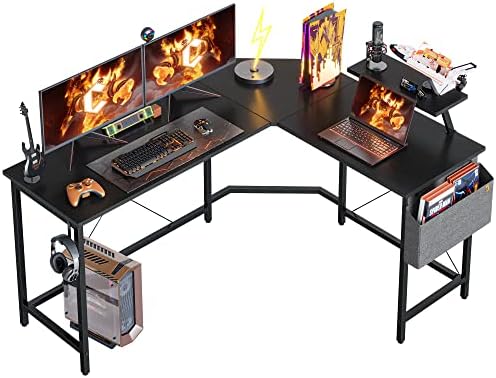 Cubiker Bureau d’angle Gaming en Forme L – 150 * 120 cm Bureau Angle d’Ordinateur Gamer Informatique avec Support d’écran, Crochet Casque, Poche Rangement Latérale pour Jouer, Travail, Domicile Noir