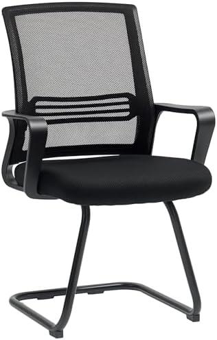 - 3 HOMCOM Office Chair Mesh Office Chair Without Casters, Ergonomic Meeting Chair with Sleigh Base, for Conference Room, Bedroom, Waiting, Reception, Black