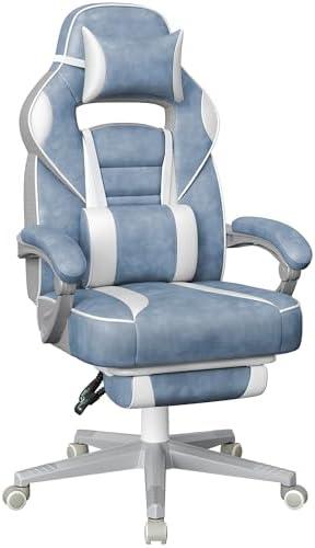 - 4 SONGMICS Office Chair, Gaming Chair, Adjustable, Telescopic Footrest, Rocker Mechanism, Headrest, Lumbar Support, Load 150 kg, Lake Blue and Cream White OBG073Q01