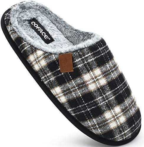 - 1 COFACE Chaussons Homme Pantoufles à Carreaux Hiver Chaussures Chaudes pour La Maison en Mousse à Mémoire de Forme, Laine en Peluche Doublée Avec Semelle en Caoutchouc Antidérapante