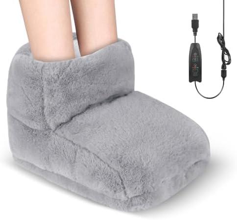 - 3 FENGQ Chauffe-pieds électrique, Chauffe-pieds flanelle, USB Chauffe-pieds, 3 réglages de chauffage, réglage de la chaleur par télécommande, pour Femmes Hommes, lavable, Gris