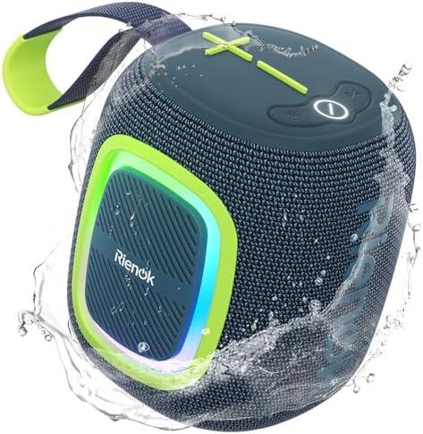 - 4 RIENOK Enceinte Bluetooth Portable, Haut Parleur Puissant Lumineuse avec Bluetooth 5.3, Autonomie 15H, 1800mAh, Radio FM, Port Clé USB, AUX, TF Carte, pour Soirées Plage Randonnées Voyage, Bleu Canard