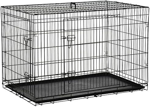 PawHut Cage pour Chien Pliable, en Acier métallique, 2 Portes verrouillables, Plateau Amovible, Cage de Transport pour Chien, 121 x 77 x 82 cm, Noir