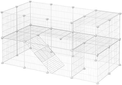 - 3 SONGMICS Clôture pour Animaux domestiques, 2 Niveaux, modulaire, pour Petits Animaux, Hamsters, Lapins, cochons, Dinde, Panneaux grillagés intérieurs, 143 x 73 x 71 cm, Blanc LPI02W