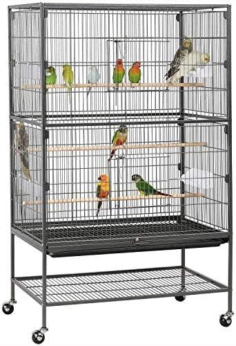 Yaheetech Grande Cage Oiseau sur Pied Volière Canaries Perroquet Grosses Perruches Cacatoès Ara Cage Oiseaux sur roulettes 2 Étages avec Support 79 x 52 x 132 cm