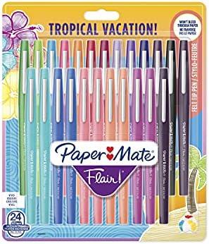 - 3 Paper Mate Flair Feutres de Coloriage - pointe moyenne (0,7 mm) – couleurs tropicales et assorties – Lot de 24