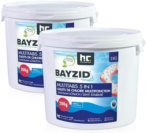 - 2 BAYZID 2 x 5 kg Galets Chlore 200g Multifonction 5 en 1 pour Piscine – Entretien et Nettoyage en 5 Phases – Fabriqué en Europe – pour Une Eau Limpide