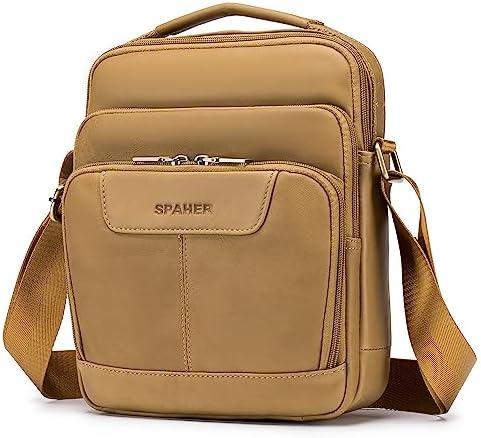 SPAHER Sacoche Homme Cuir Véritable Sacoche Homme Bandouliere Pochette Homme Grand Sac Bandoulière Homme Sac Porté Epaule Sacs Business Sacs à Main Voyage pour Ipad 11 pouces Sac de Messager