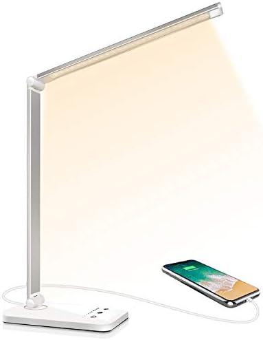 SLATOR Lampe de Bureau LED, Dimmable 5 Modes de Couleur 10 Niveaux de Luminosité, Flexible Contrôle Tactile Protection des Yeux,Lampe de chevet Avec Port USB et Fonction Minuterie