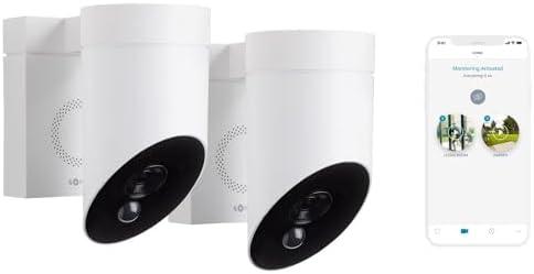 Somfy 1870471 – 2 Outdoor Camera blanches – Caméras de Surveillance Extérieures – Sirène 110 DB – Branchement Possible sur un luminaire existant