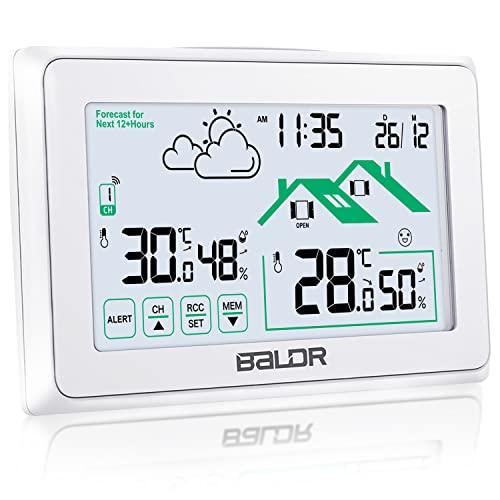 - 1 BALDR Station Meteo Interieur Exterieur Sans Fil, Horloge Umérique DCF Thermomètre Intérieur Avec Prévisions Météo de Ventilation et Rétro-éclairage