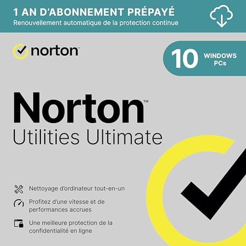 Découvrez les avantages de Norton Utilities Ultimate 2025 pour protéger et optimiser votre PC. Cette suite logicielle tout-en-un offre plusieurs fonctionnalités essentielles pour améliorer la puissance de traitement, la mémoire et le disque dur de votre ordinateur Windows. Fini les ralentissements lorsque vous lancez des applications gourmandes en ressources comme les jeux, les logiciels de retouche d’image ou encore les plateformes de streaming. Ce logiciel, compatible avec 10 appareils, est idéal pour une protection complète de tous vos équipements Windows. Voir le produit sur Amazon.
