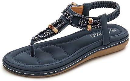 - 4 ZOEREA Femmes Eté Sandales Plates Casual T-Strap Strass Bohême Tongs Elegant Confort Plat Chaussures de Plage Vacances