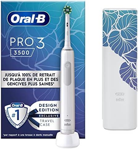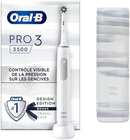 - 1 Oral-B Pro 3500 Brosse À Dents Électrique Blanche, Un Capteur De Pression Pour Protéger Les Gencives Sensibles, Des Accessoires, 1 Brossette Ronde, 1 Étui De Voyage, Conçue par Braun