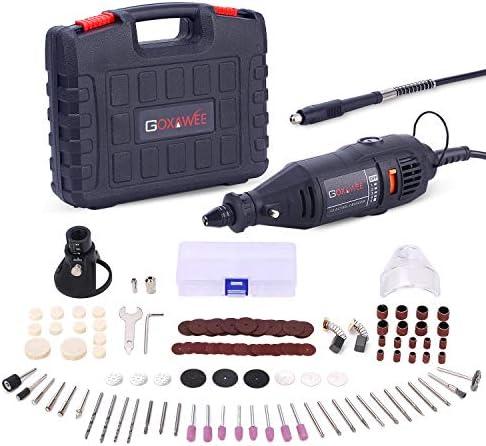 GOXAWEE Mini Outil Rotatif Electrique – 130W Mini Meuleuse/Perceuse Set avec Arbre Flexible & 140 Accessoires pour Projets de Bric. pour la coupe, le ponçage, le travail du bois
