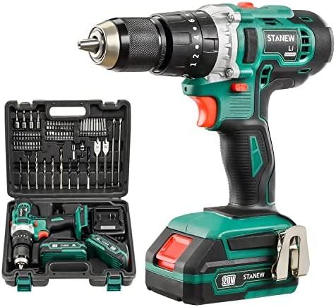 La STANEW Perceuse à Percussion 20V – QW Perceuse-Visseuse sans fil est un outil performant, polyvalent et solide qui convient à tous les vissages, perçages et perçages à percussion. Elle est dotée d’une conception unique de réglage à 2 vitesses, offrant à la fois une meilleure expérience de fonctionnement à grande vitesse et un couple élevé à basse vitesse. Son réglage du couple 20+3 garantit un vissage précis dans divers matériaux, tels que le bois, le métal et la maçonnerie. Sa conception sans clé permet des changements d’embouts rapides et faciles, et elle est livrée avec 69 accessoires pour commencer immédiatement vos projets. Voir le produit sur Amazon.