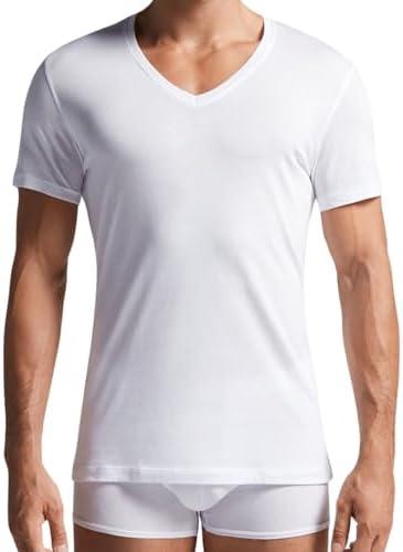 Intimitaly deFonseca Lot de 3 t-shirts pour homme en coton peigné col rond et col en V T-shirt fin coutures plates Sous-vêtements pour homme noir blanc et coloré