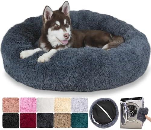 MCPTSN Panier Rond Chien Dehoussable, Coussin Chien Dehoussable Lavable Facile, Anti-Dérapant, Lit pour Chien Grande Taille Orthopedique, Moelleux et Confortable (L:70cm, Gris Foncé)