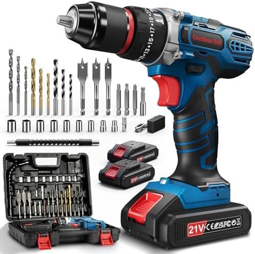 - 1 Sundpey 21V Cordless Drill - Cordless Screwdriver with 2 Batteries, 45Nm Max, 2 Speed, 18+1 Torque Settings, 21 Accessories, for Home DIY Projects, Blue